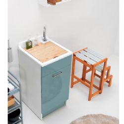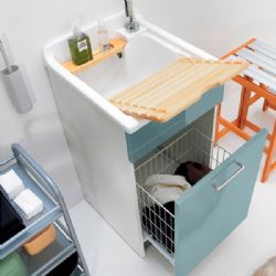 Fornito di cestello portabiancheria (scorrevole ed estraibile), tavola lavapanni double face in legno massello + griglia