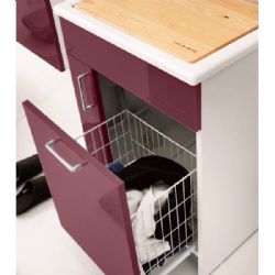 Fornito di cestello portabiancheria (scorrevole ed estraibile), tavola lavapanni double face in legno massello + griglia