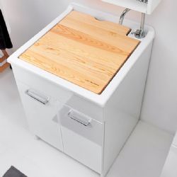 Mobile in legno nobilitato 18 mm con ante spigolate, idrofugo a norme EN, finitura bianco lucido.